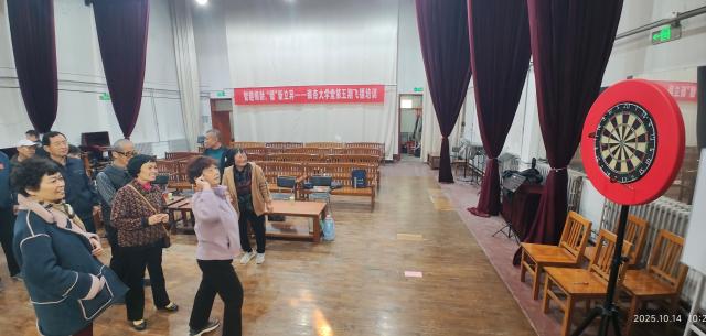 为丰富老年人体育文化生活,普及飞镖运动,提高竞赛水平,10月14日,银杏大学堂第五期飞镖培训活动在我校老干部活动中心成功举办。山东省老年人飞镖比赛团体第三名获得者--冠县老年飞镖队来校现场指导并与我校老同志进行了表演赛,聊城市老体协副主席徐昌然、副秘书长杨习伟参加活动。